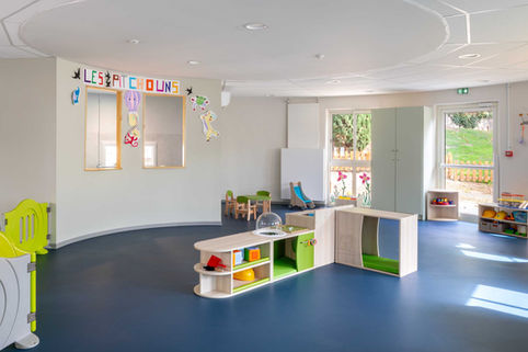 La crèche de La Farandole est comme un organisme vivant, assemblage de cellules circulaires insérées dans un beau jardin public, réalisé en 1972 à Manosque par l’architecte Robert Granier. Le projet ravive et fait croître cet organisme, en y ajoutant de nouvelles cellules, selon les mêmes lois, au sein du même couvert végétal.